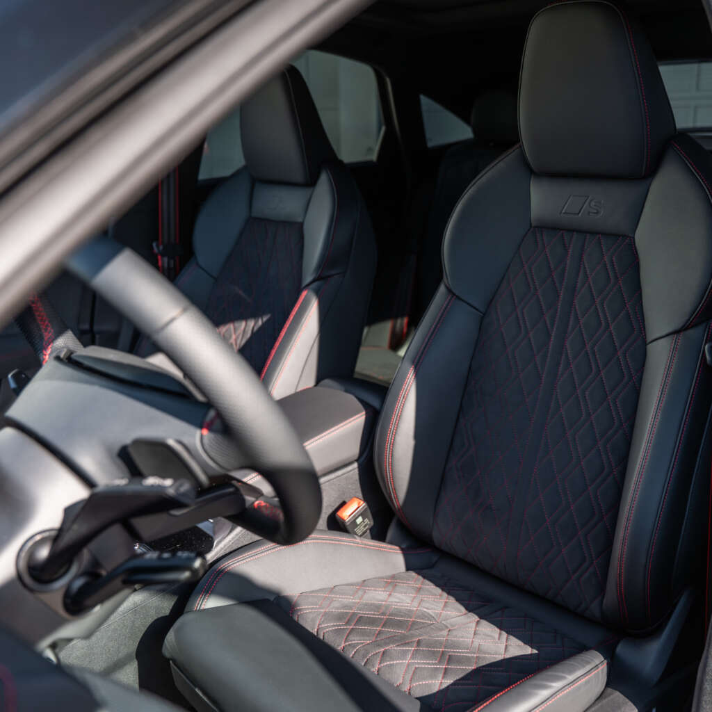À bord, les évolutions restent plus subtiles, mais participent à cette montée en gamme. L’éclairage d’accueil spécifique et les tapis siglés ABT apportent une touche d’exclusivité supplémentaire, sans altérer l’ambiance raffinée et technologique déjà bien installée.